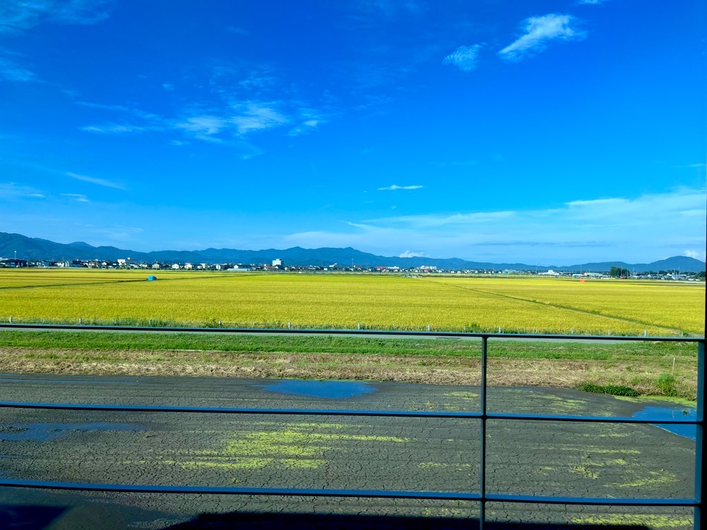 本会議の数日前に台風13号が日本列島に接近しており、台風と一緒に山形に上陸?とも思いましたが、幸い台風は消え、無事に鶴岡へ着くことができました。今回宿泊したスイデンテラスは名前の通り、水田に囲まれており、青い空と黄色の稲穂のコントラストが非常に美しい、風光明媚なホテルでした。施設自体も新しく、また会場の慶応義塾大学先端生命科学研究所からも目と鼻の先の距離で、とても快適な二泊三日を過ごせました。